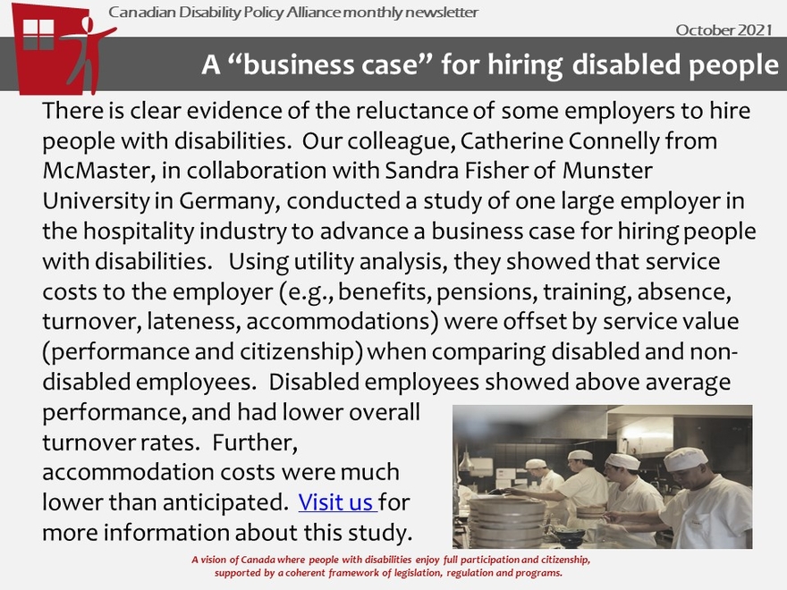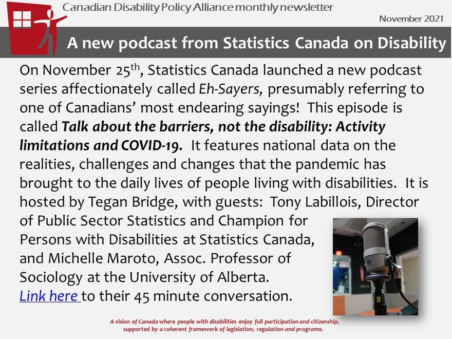 The Canadian Disability Policy Alliance is a national collaboration of disability researchers, advocates, and policy-makers, aimed at creating and mobilizing knowledge to enhance disability policy in Canada. The Alliance was funded by SSHRC Community University Research Alliance